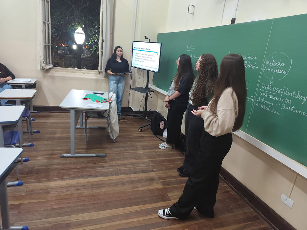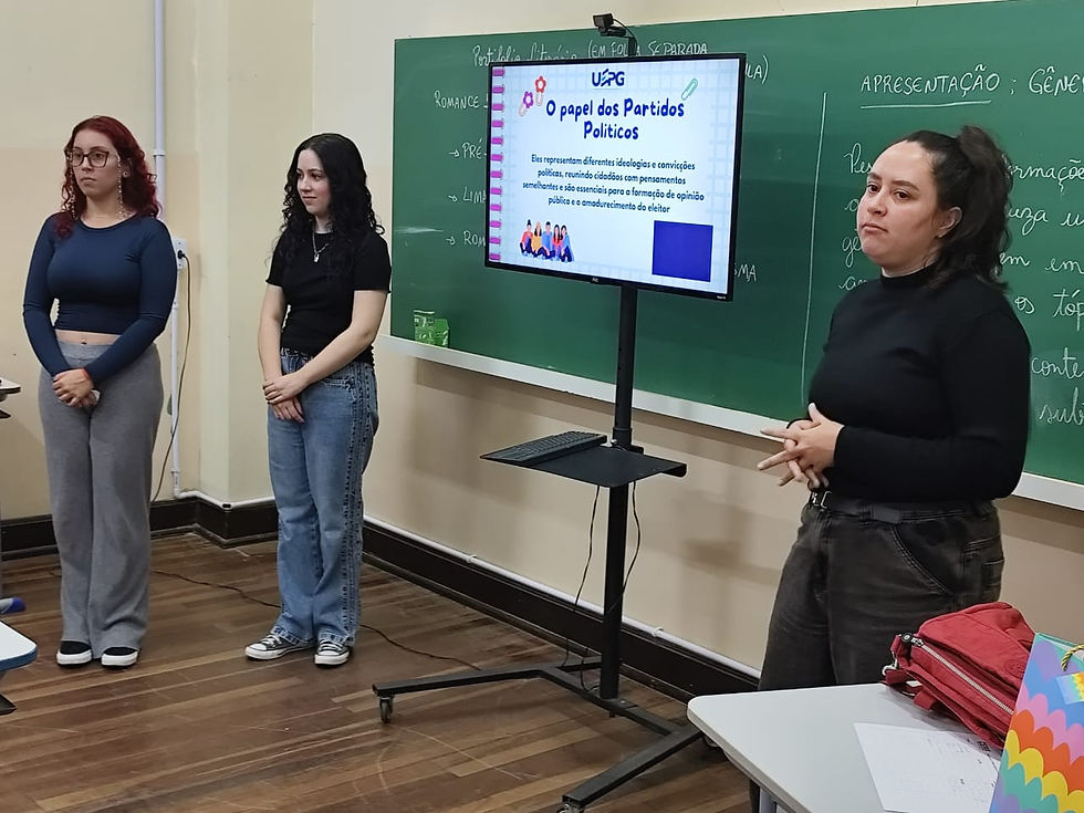 Palestra no Colégio Estadual Pe. Arnaldo Jansen realizada por acadêmicas da UEPG, referente ao Projeto Eleitor do Futuro.